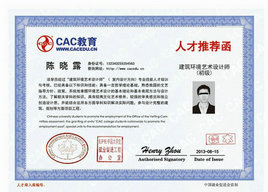 人力資源和社會保障部中國職工教育和職業(yè)培訓協(xié)會頒發(fā)全國通用的“建筑環(huán)境藝術(shù)設(shè)計師”《專業(yè)能力證書》。