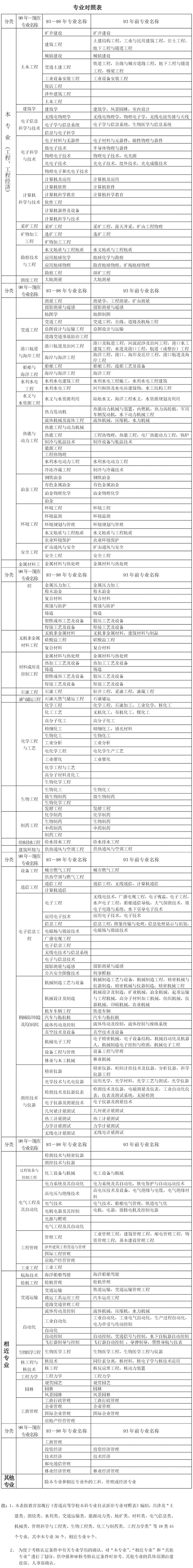 專業對照表